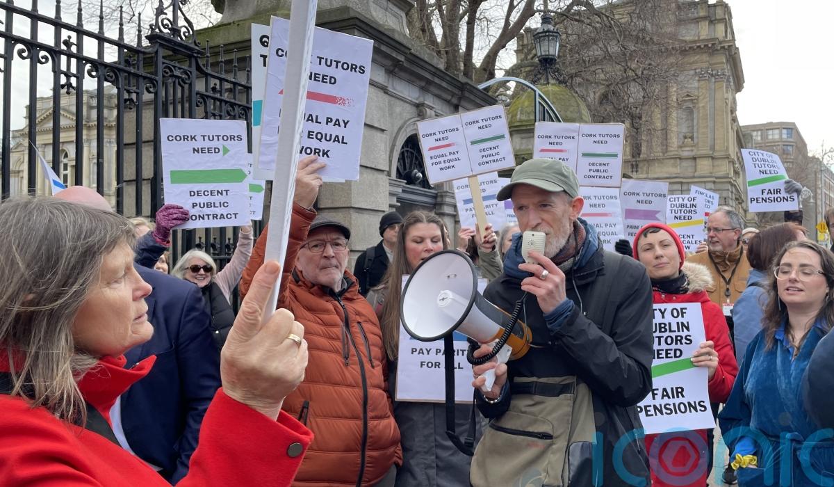 Dozens of tutors gathered at the gates of Leinster House on Wednesday to call for public sector contracts and protest against “abusive” working conditions.