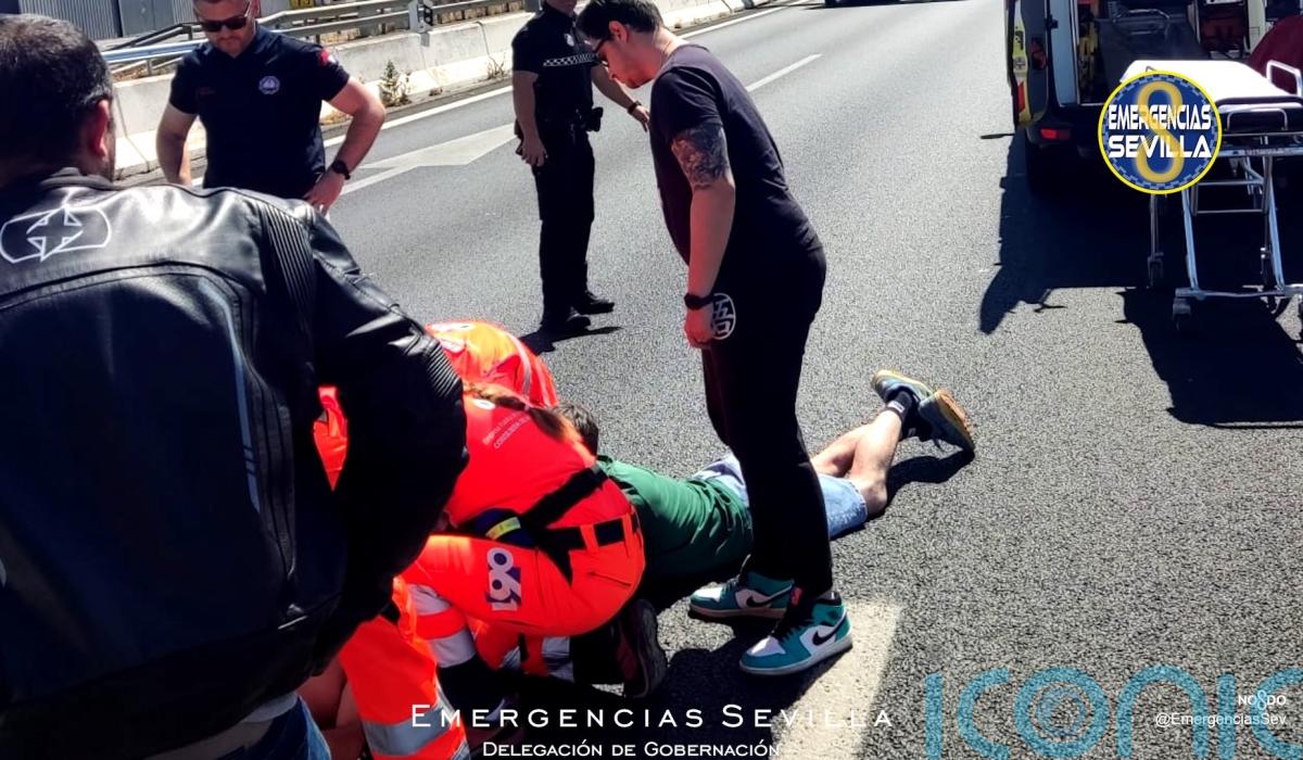They closed off the scene near Alcala de Guadaira and attended to the middle-aged man, who was unconscious, had multiple injuries and could not breathe.