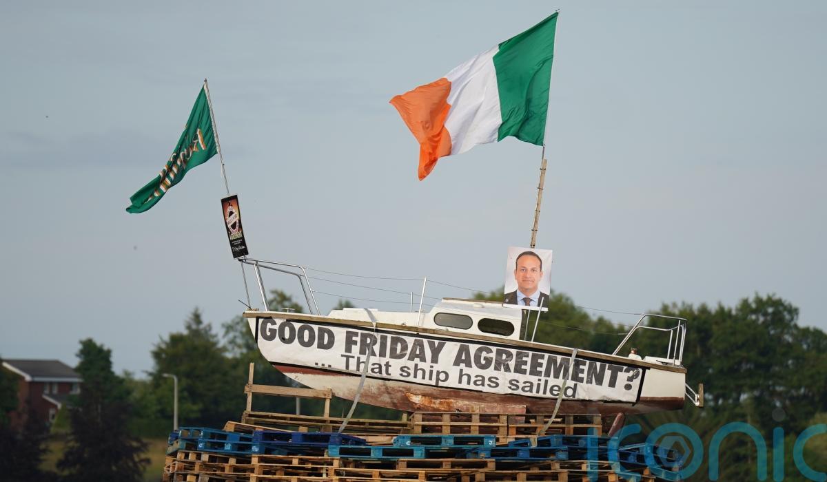 Given the title No Irish Sea Border Bonfire, in reference to opposition in unionist and loyalist communities to post-Brexit trading arrangements, the bonfire was lit at around 11pm after a parade and an address by loyalist activist Jamie Bryson.