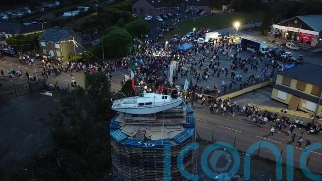 The towering pyre in Moygashel, themed as an anti-Northern Ireland Protocol bonfire, attracted attention online after a boat was placed on the top of it.