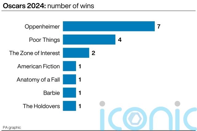 The full list of winners for the 2024 Academy Awards is as follows: