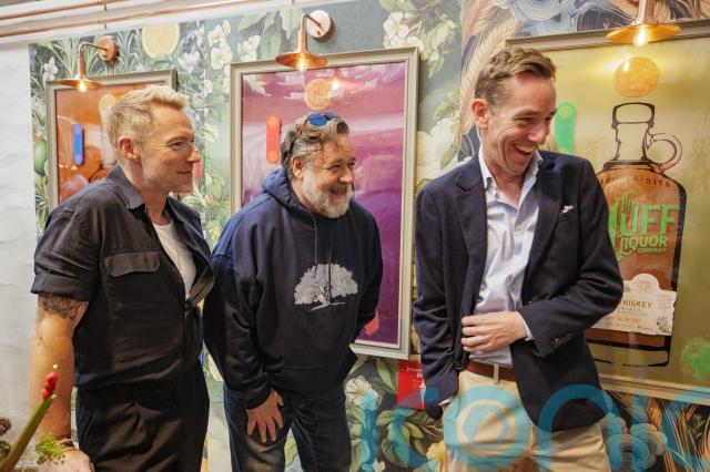 The Gladiator and LA Confidential actor attended the formal opening of the new home for The Muff Liquor Company, along with broadcaster Ryan Tubridy and former Boyzone member Ronan Keating.