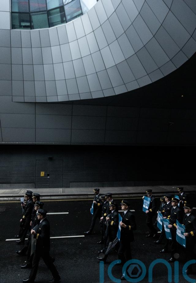 An eight-hour strike was also held on Saturday, during which hundreds of pilots marched around the airport, holding signs that read “two years talking, deal now” and “no pilots, no profits”.