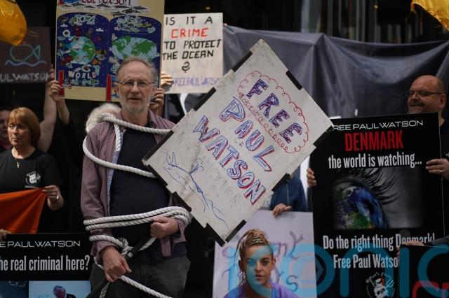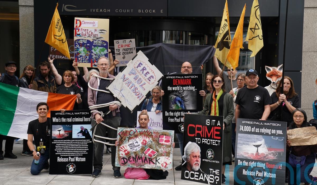 A protest has been held outside the Danish embassy in Dublin calling for the release of veteran environmental activist and anti-whaling campaigner Paul Watson.