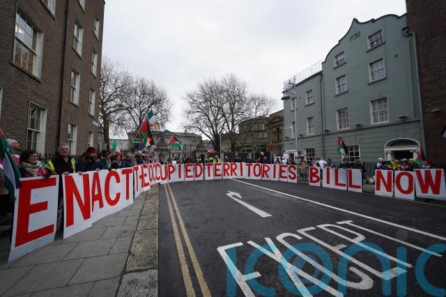As the 34th Dail met for the first time, a protest was held at the gates of Leinster House calling on TDs to urgently pass a bill that would ban imports from illegal Israeli settlements on Palestinian land.