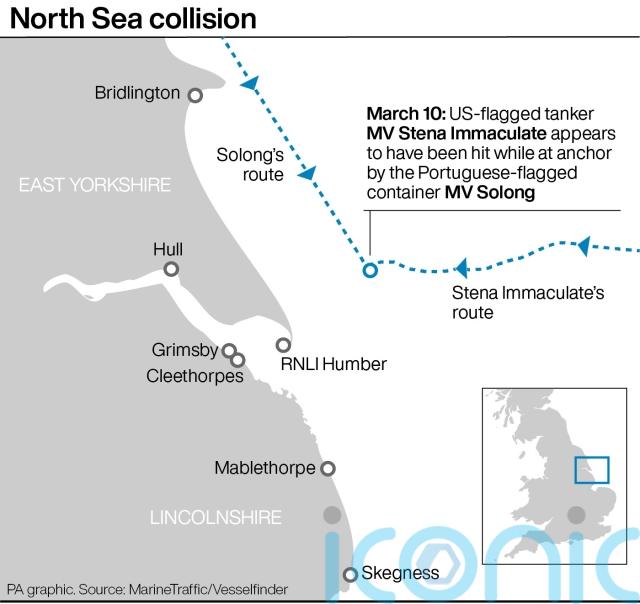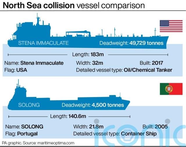 Solong struck the Stena Immaculate off the east coast of Yorkshire on Monday morning.