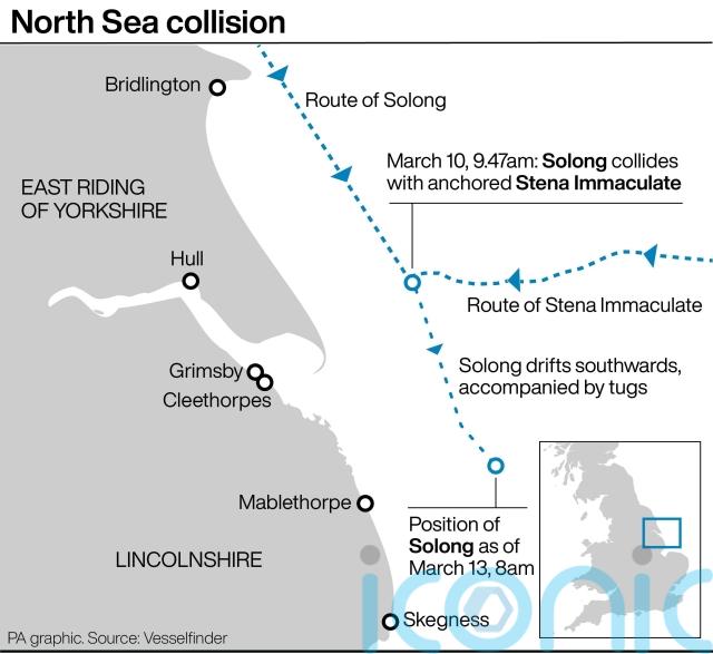 Container ship Solong struck the Stena Immaculate off the east coast of Yorkshire on Monday morning.