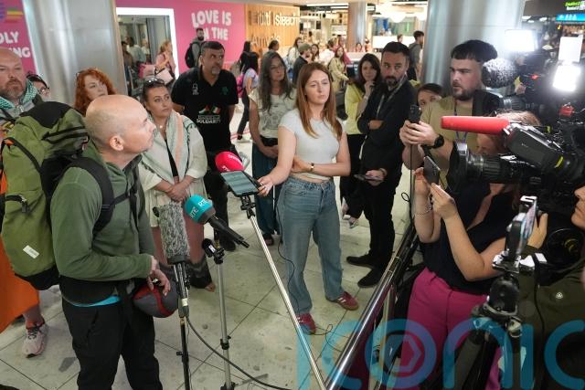 Speaking to reporters after being greeted at Terminal 1 by his partner and child, Mr Murphy said while participants had not reached Rafah, they had succeeded in highlighting their cause.