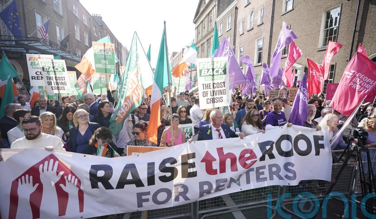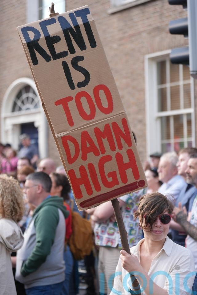 The protest was held to coincide with a motion in the Dail on housing and homelessness, which calls for the introduction of a no-fault eviction ban and greater use of compulsory purchase orders to “bring empty homes back into use”.