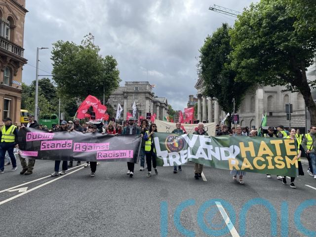Several protesters carried signs saying: “Blame the Government, not migrants”; and: “Dublin stands against racism”. They also chanted: “Say it loud, say it clear, refugees are welcome here.”