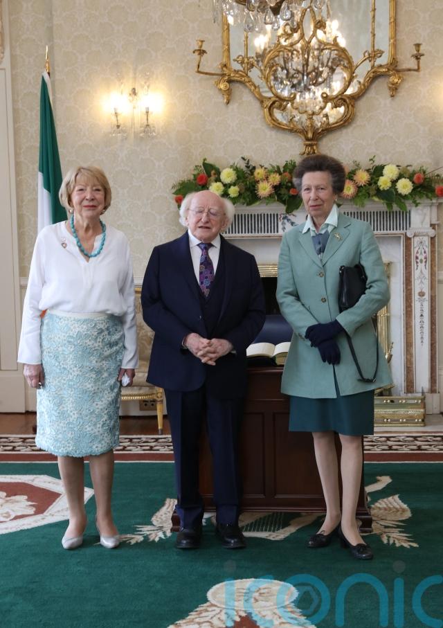 Irish president Michael D Higgins has welcomed the Princess Royal to his official residence in Dublin.