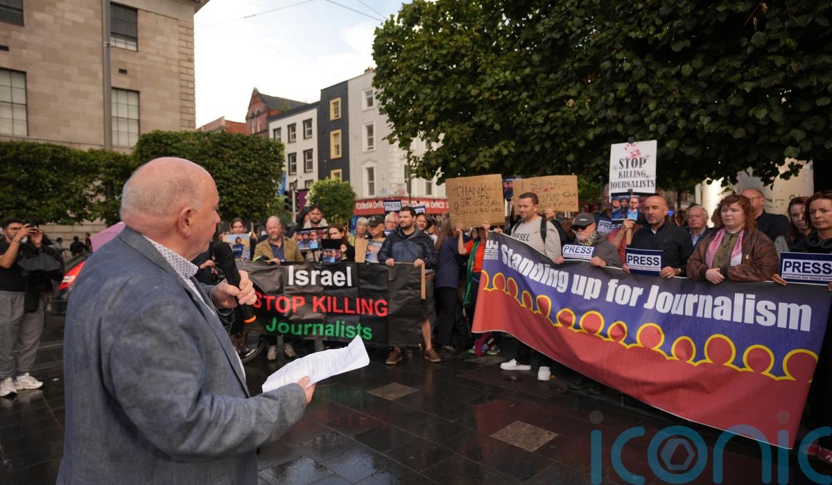 The Dublin protest was organised after five journalists were killed in an Israeli strike on Nasser Hospital in Gaza on Monday.
