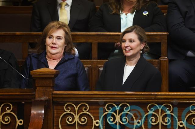 He took his seat by the Ceann Comhairle, watched by his wife Olena Zelenska, who sat with with the Taoiseach’s wife Mary Martin and Ukrainian dignitaries.