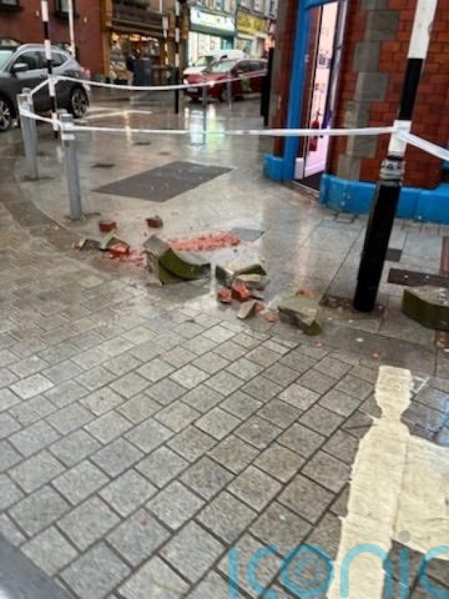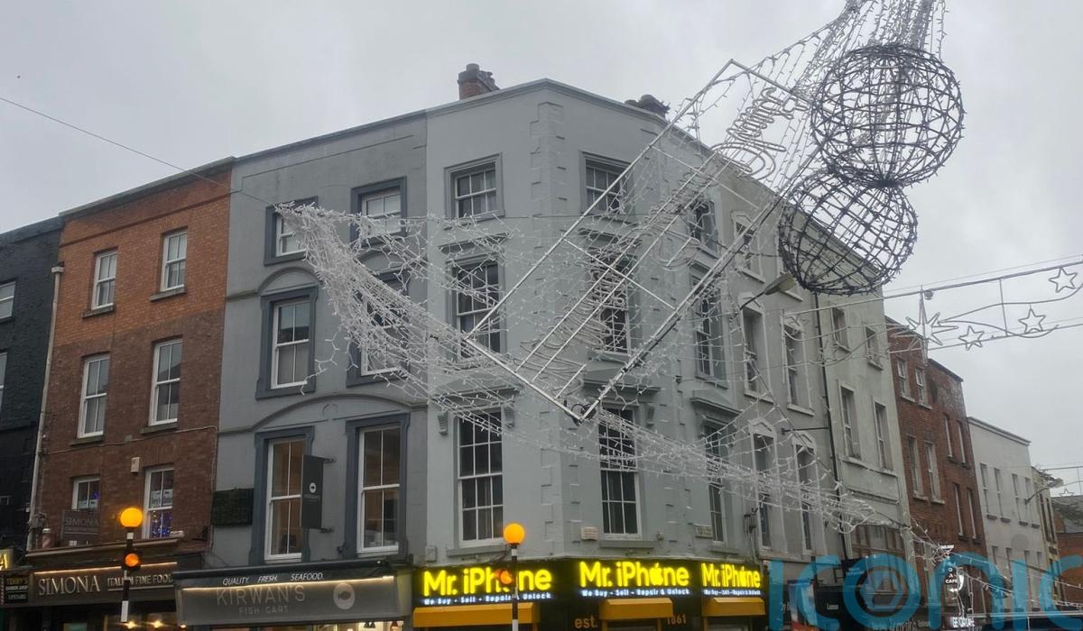 A junction in the centre of Drogheda is closed after building masonry fell, pulling down Christmas lights.