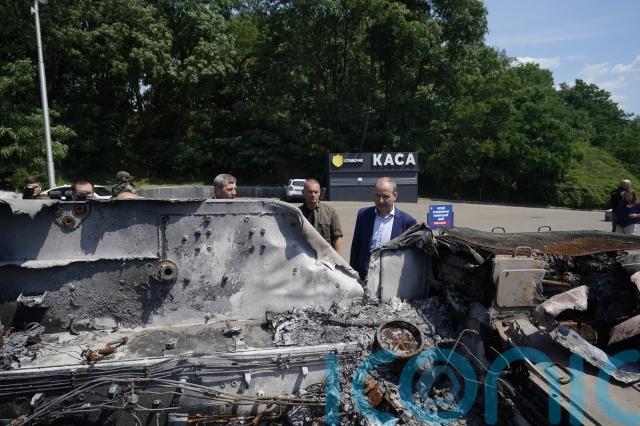 In Borodyanka, Mr Martin met the town’s mayor and viewed apartment blocks gutted by fire during the Russian bombardment.