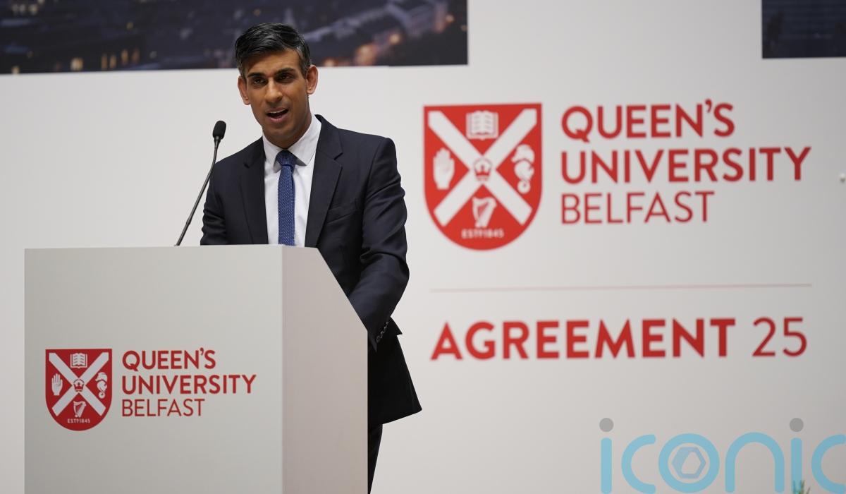 During his speech at Queen’s University in Belfast, Mr Sunak made a direct appeal to unionists blocking the institutions in Belfast.