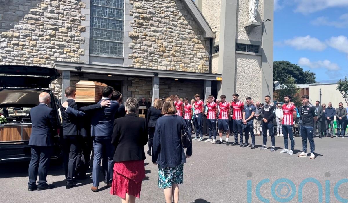 Ahead of the mass, players from Gorman’s beloved Sligo Rovers accompanied his cortege to the church and formed a line outside as his coffin was carried inside.