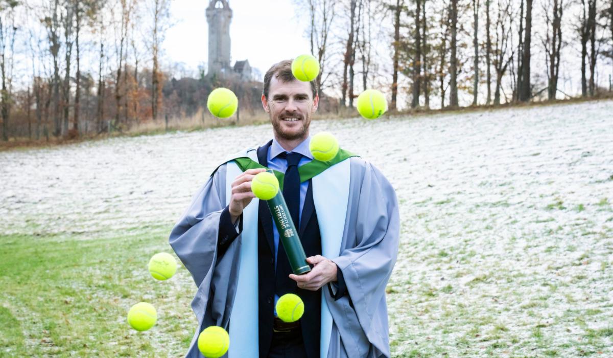 The tennis champion was awarded an honorary doctorate by the University of Stirling in recognition of his contribution to Scottish and UK tennis, at its winter graduation ceremony on Friday.
