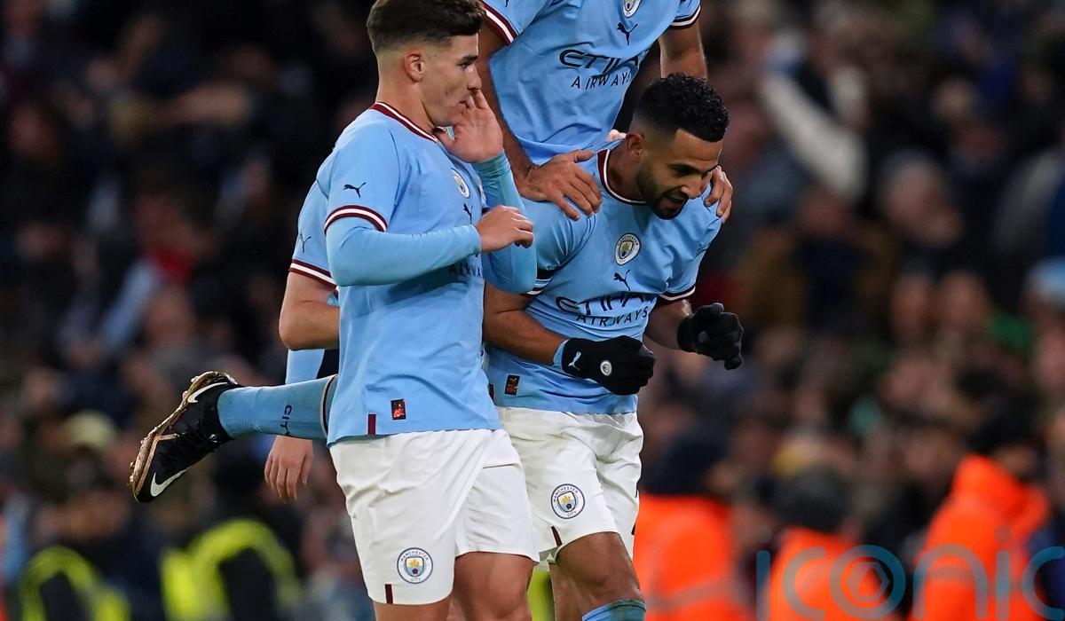Three of the champions’ goals in a one-sided encounter at the Etihad Stadium came in a 15-minute spell late in the first half as Mahrez, Julian Alvarez – from the penalty spot – and Phil Foden all found the target.