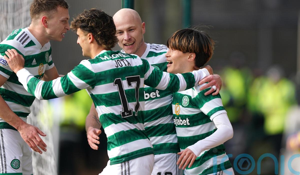 Rangers applied some pressure to the champions with their win over Ross County on Saturday but this Celtic side are made of stern stuff.  It took only 13 minutes at McDiarmid Park to take the lead when Saints defender Andrew Considine turned a Kyogo Furuhashi cross into his own net. The Japan striker added a second with a fine finish soon afterwards before wide man Drey Wright pulled a goal back, only for Hoops midfielder Aaron Mooy to restore Celtic’s two-goal lead before the break. Considine was sent off by referee David Dickinson in added time, allowing fellow substitute David Turnbull to fire in the fourth following a short free-kick as a powerful Celtic side regained their nine-point lead over Rangers at the top of the table.