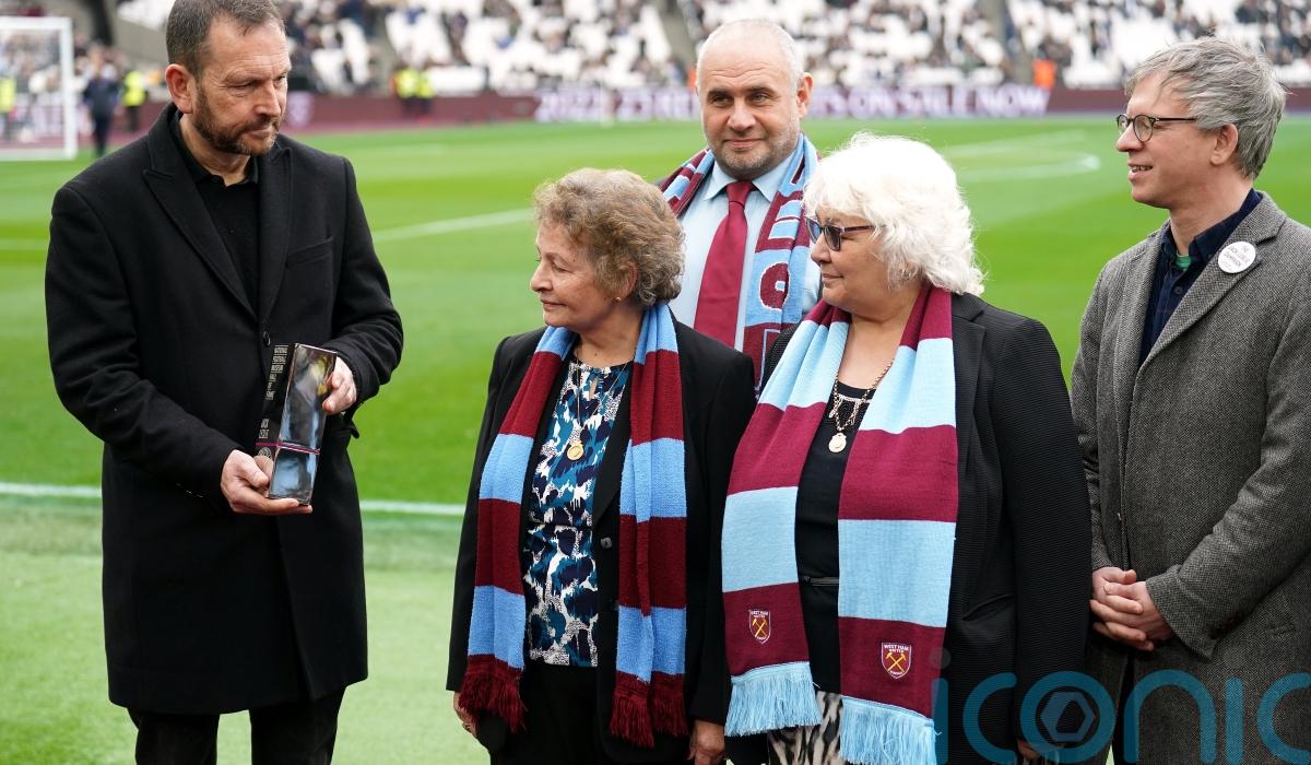 He was inducted into the Hall of Fame in a pitchside ceremony attended by Brooking, fellow former player Carlton Cole and Leslie’s granddaughters Lyn, Gill and Les.