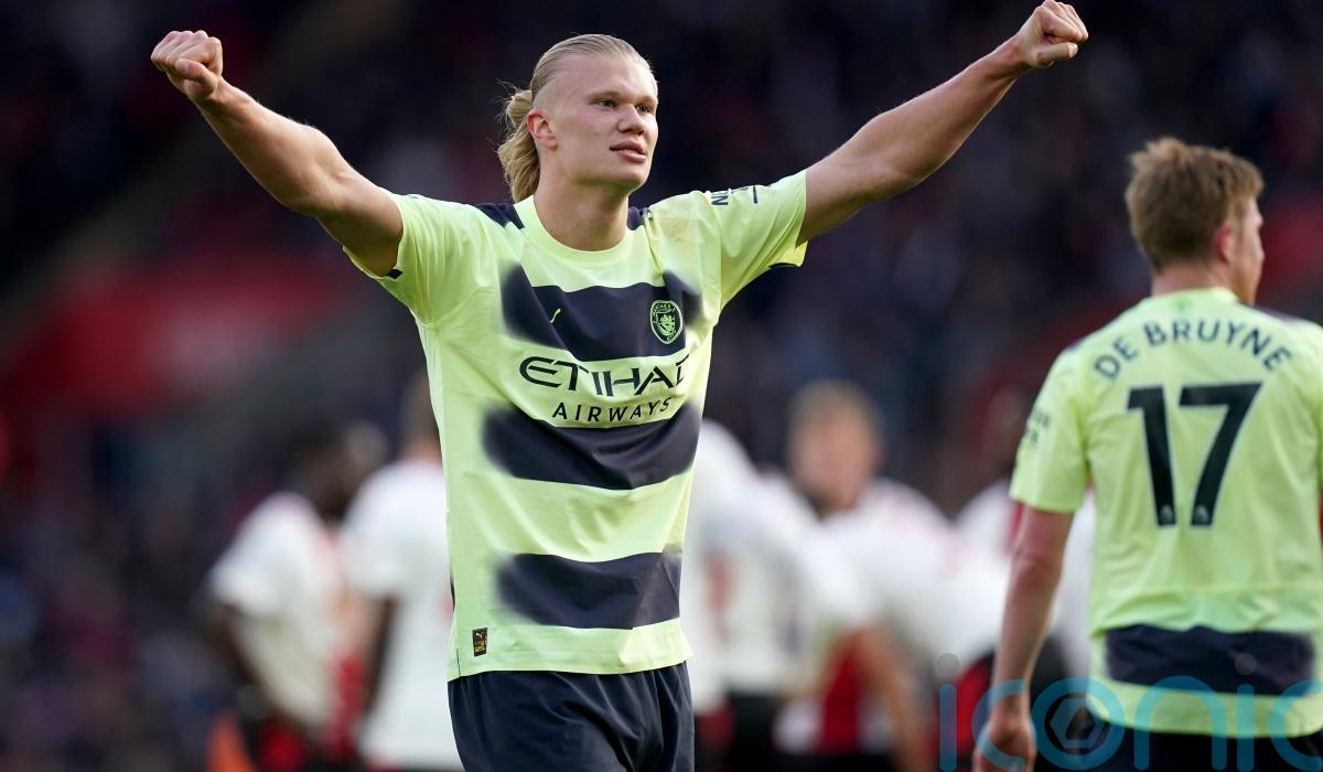 Erling Haaland kept Manchester City’s title hopes alive with goals either side of half-time in his side’s 4-1 victory over Southampton at St Mary’s.