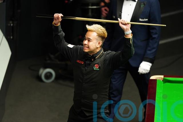 Saengkham promptly lifted his cue in the air with both hands to mimick the celebration of Dennis Taylor from his memorable 1985 victory over Steve Davis in a nail-biting last-ball decider.