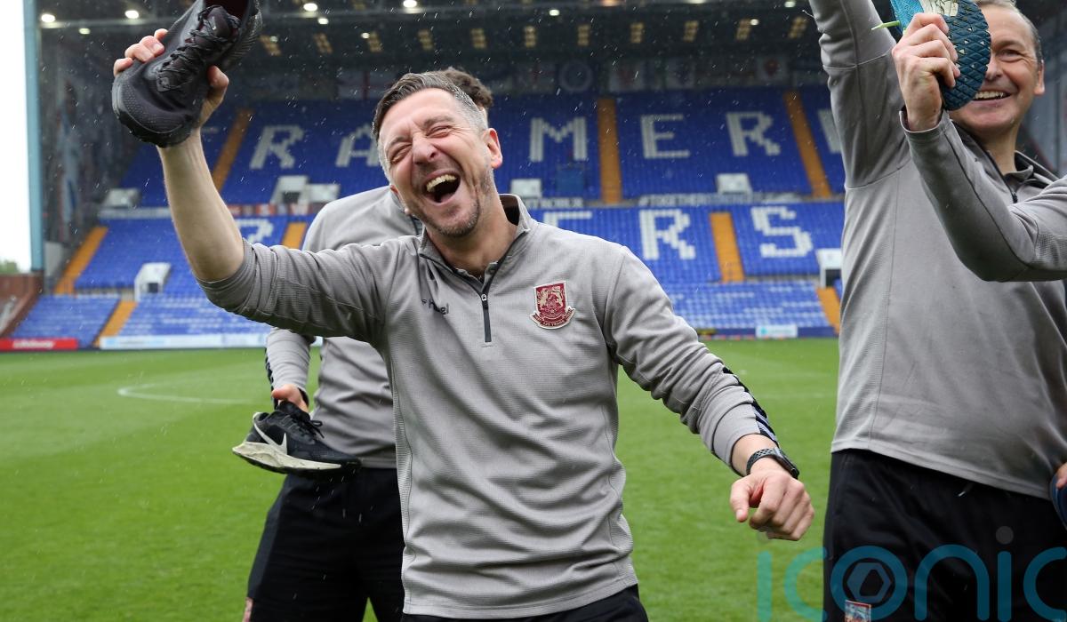 But Hoskins’ early strike ultimately proved to be enough for Brady’s side, who would have been promoted anyway due to Stockport’s draw with Hartlepool, as Northampton return to the third tier of English football for the first time since being relegated in 2021.