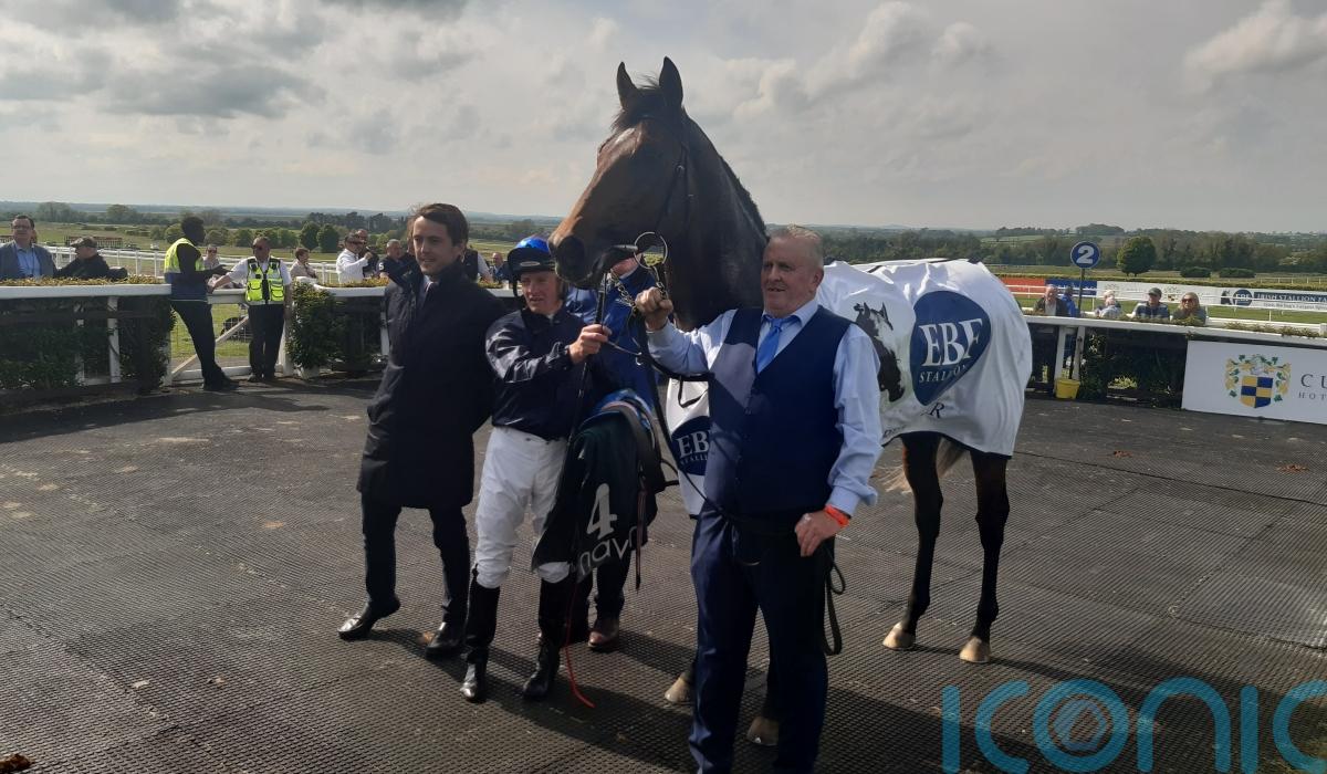 Jessica Harrington’s Givemethebeatboys struck on debut to land the Irish Stallion Farms EBF Maiden under Shane Foley.
