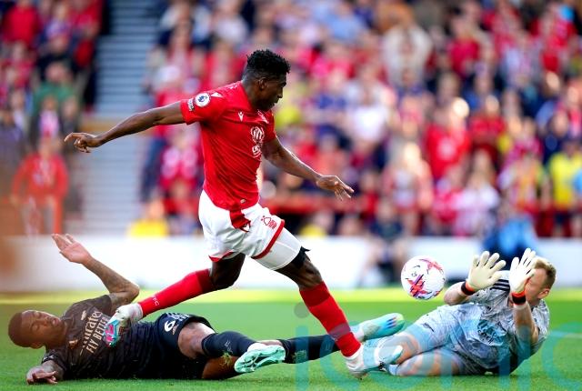 Martin Odegaard loosely passed straight to Morgan Gibbs-White who surged forward at pace before feeding Awoniyi, who enjoyed a bit of fortune as Gabriel’s challenge bobbled against his leg and he scuffed past Aaron Ramsdale.