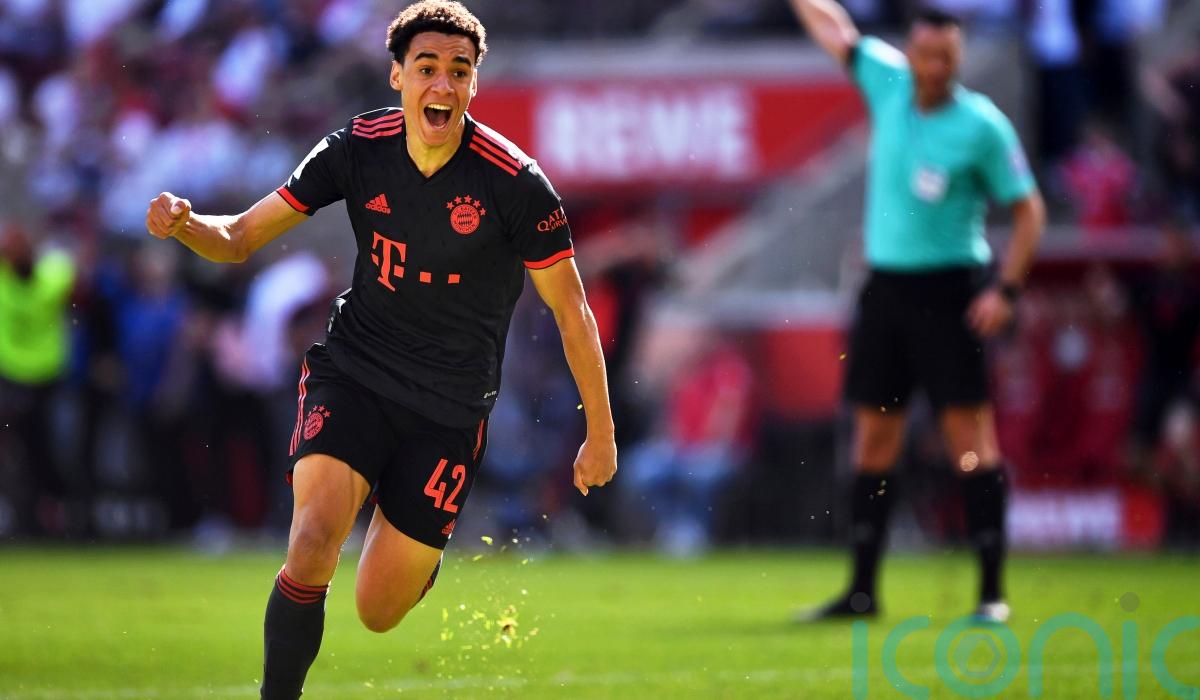 Jamal Musiala’s 89th-minute goal saw Bayern beat Cologne 2-1 and capitalise on Borussia Dortmund’s failure to beat Mainz in a 2-2 draw, while PSG’s 1-1 draw away to Strasbourg – which included Messi’s 496th league strike – was enough to confirm the capital club as champions with one game to spare.