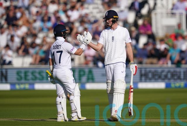 It was then over to Ben Duckett and Zak Crawley, who wasted little time getting back into the groove and played true to the aggressive ‘Bazball’ style that has taken the nation by storm with fifties in a century opening stand to help England close on 152 for one.