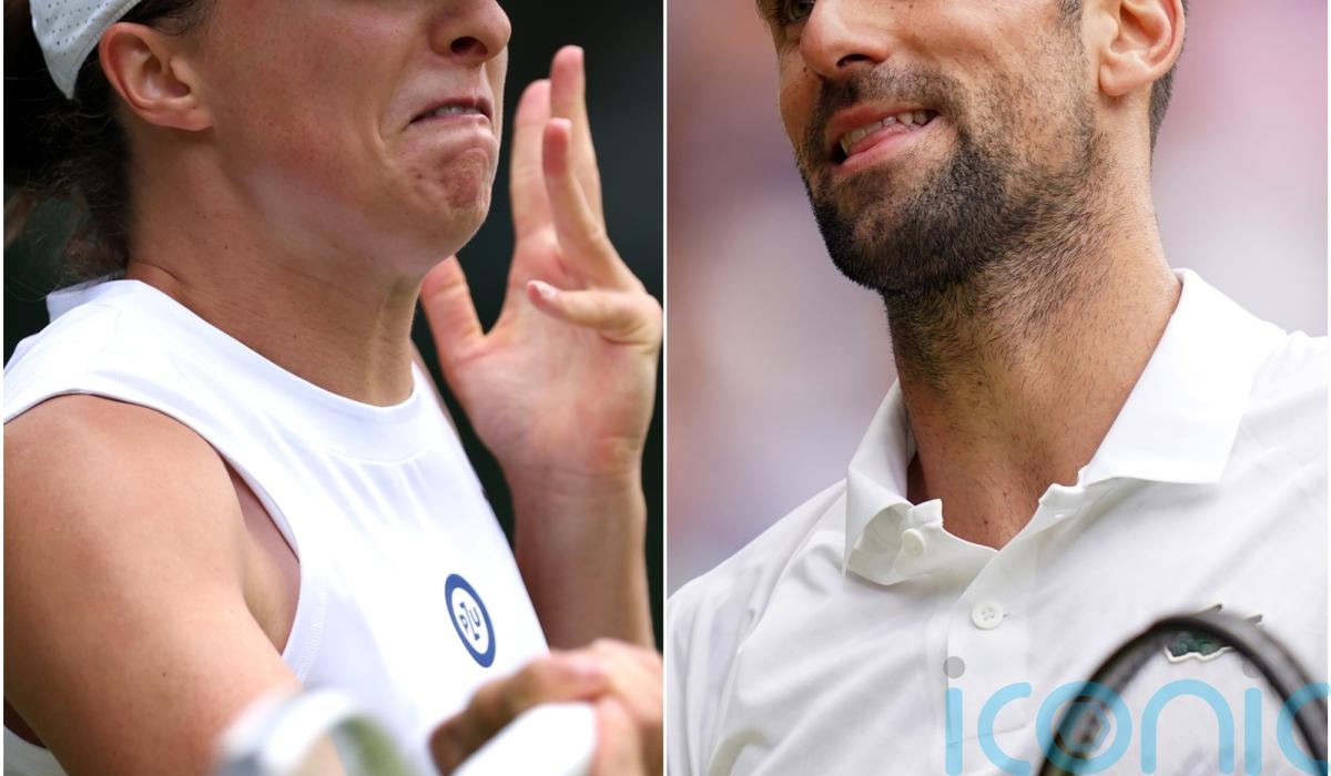 Novak Djokovic battled back to remain on course for a fifth successive Wimbledon men’s title on the day women’s world number one Iga Swiatek suffered a quarter-final exit.