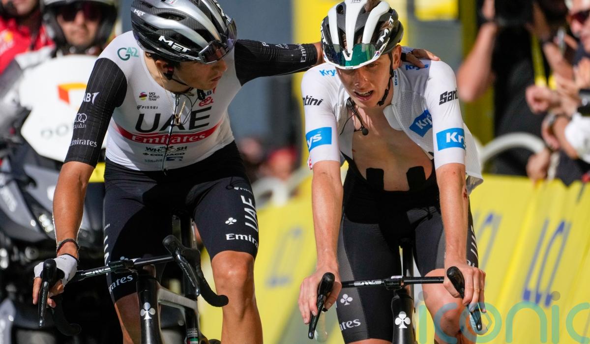 Having shown cracks in Tuesday’s time trial, Pogacar crumbled on this punishing 28km climb, losing the wheels still with eight kilometres remaining to the summit as he watched his rivals ride away without even needing to attack, the time gaps ballooning before the finish.
