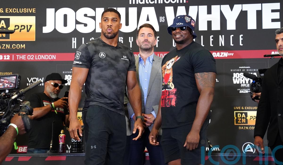 It is understood Joshua could still fight at London’s O2 Arena as Matchroom seek a late replacement opponent for the former two-time world heavyweight champion but Whyte faces a battle to clear his name.