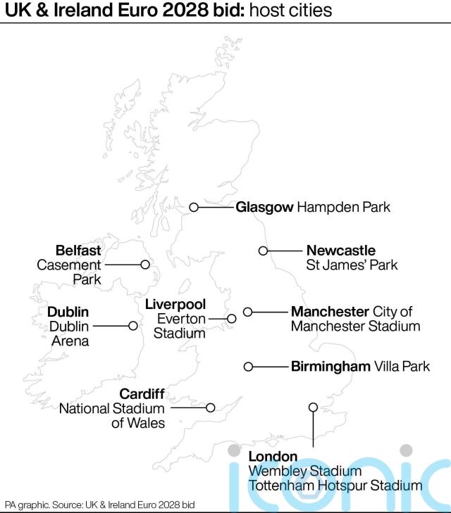 A redeveloped Casement Park in Belfast is also due to be used, along with the Aviva Stadium in Dublin, Hampden Park in Glasgow and the Principality Stadium in Cardiff.