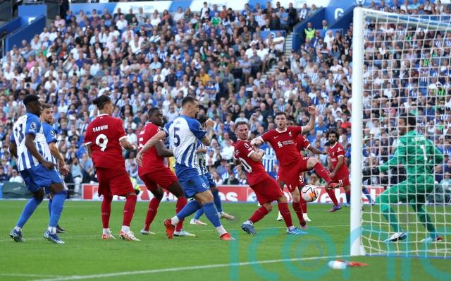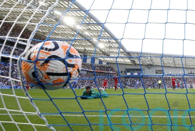 Salah gave Liverpool the lead from the penalty spot in the 44th minute after Bart Verbruggen playing an awkward pass to Gross that put the midfielder under pressure. He was dispossessed by Szoboszlai and in a desperate attempt to recover the ball he yanked down the Liverpool midfielder, allowing Salah to step up and bag his second from the spot.
