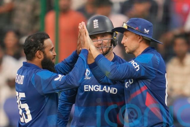 Chris Woakes and Sam Curran managed just four wicketless overs apiece, conceding 41 and 46 respectively, but Rashid’s three for 42 – his best figures at a World Cup – took up some of the slack.
