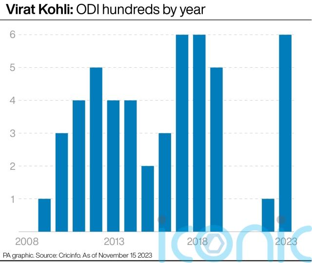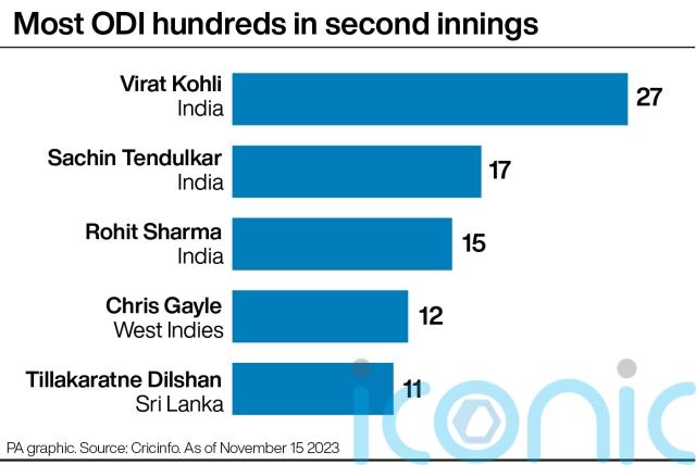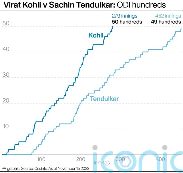 Kohli had equalled Tendulkar’s 49 one-day hundreds just 10 days earlier in a group stage victory against South Africa.