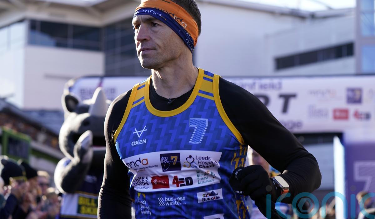 Kevin Sinfield greeted by Sir Gareth Edwards after latest fundraising challenge