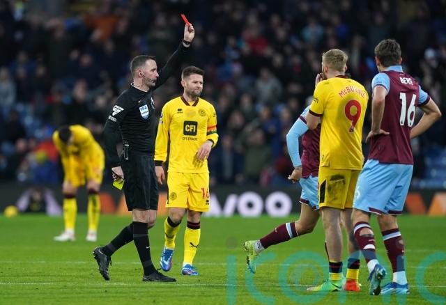 Gallagher’s was the second red card of the Premier League weekend, following Sheffield United striker Oli McBurnie’s second of the season in Saturday’s defeat to Burnley.