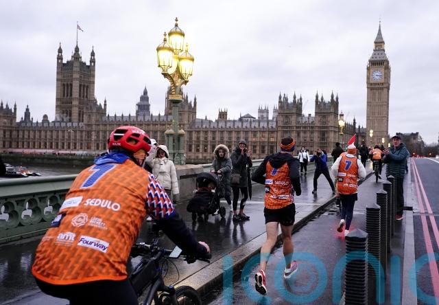 Sinfield, the current England rugby union defence coach, had again battled the elements en route to crossing the finishing line to a rapturous welcome on The Mall in London on Thursday afternoon.