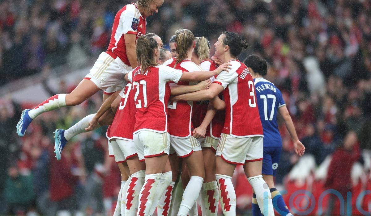 Arsenal moved level on points with Chelsea at the top of the Women’s Super League with a 4-1 rout of the champions in front of a league-record crowd of 59,042 at the Emirates Stadium.