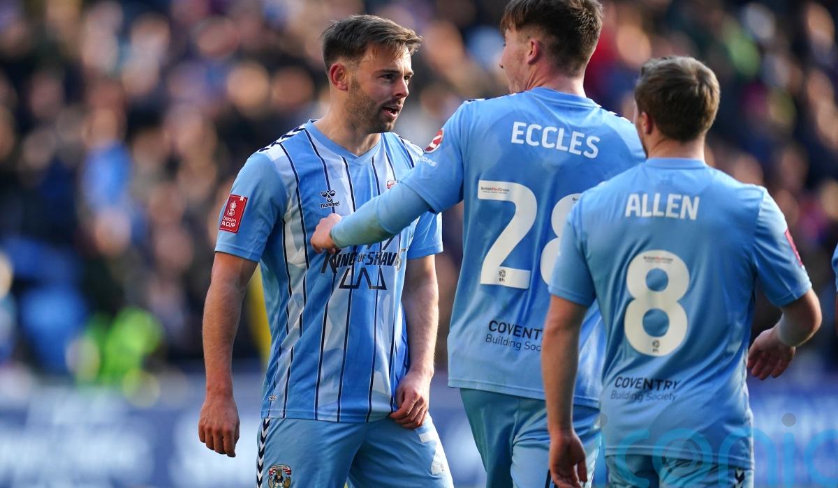 First, he took down Jamie Allen’s lay-off and bent an effort into the far corner before picking out the same corner with his left foot five minutes later to finish off the rout and book Coventry’s place in the fourth-round draw.