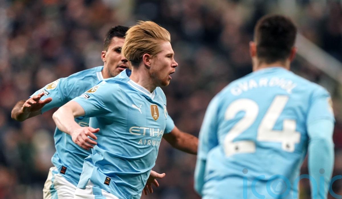 City were trailing 2-1 at St James’ Park when De Bruyne was sent on as a 69th-minute replacement for Bernardo Silva, but he scored within five minutes before setting up fellow substitute Bobb to snatch victory in stoppage time at the end of a thrilling encounter.