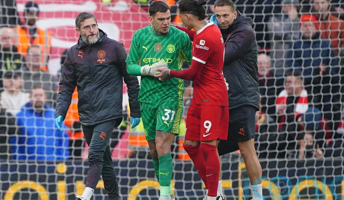 Ederson stayed on the field for the resulting spot-kick, from which Alexis Mac Allister scored to cancel out John Stones’ opener, but needed to be substituted soon after.