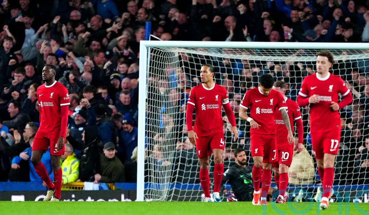 Branthwaite could have added further embarrassment but headed wide while the closest Liverpool came to a response was when Diaz’s curling shot rebounded off the post and they played out the final minutes with ‘you lost the league at Goodison Park’ ringing around the ground.