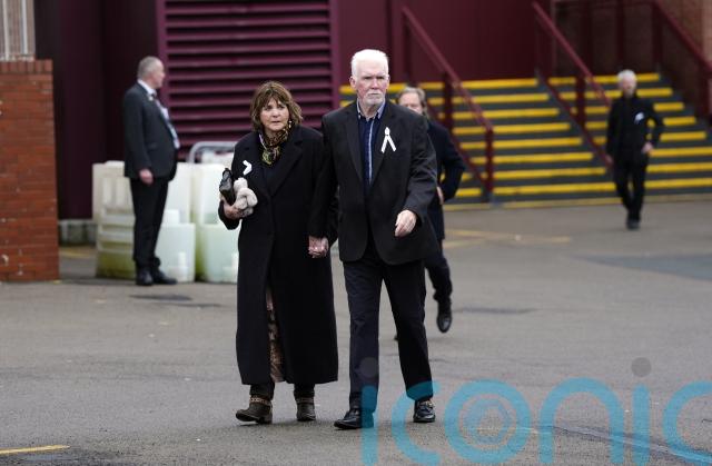 Funeral cars left the ground and proceeded past mourners in the stadium’s fan zone before exiting en route to the funeral service.
