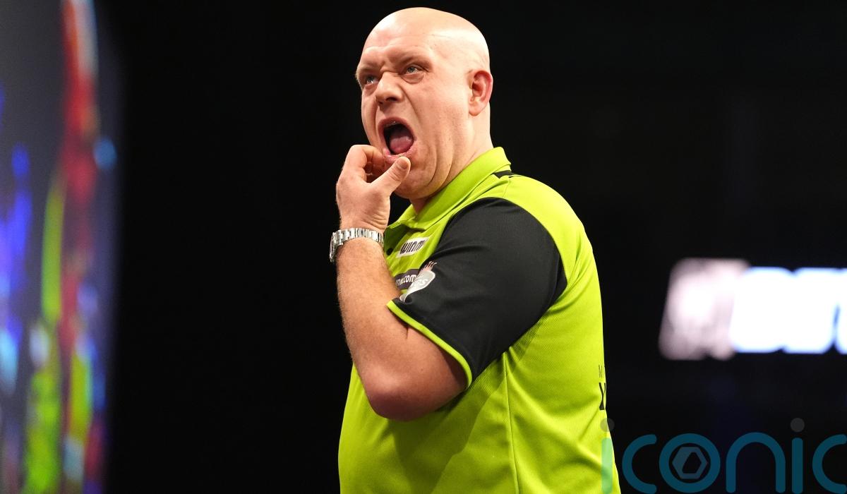 Michael van Gerwen crashed out of the Grand Slam of Darts in the group stage as Luke Littler missed double 12 for a nine-darter on an eventful night in Wolverhampton.