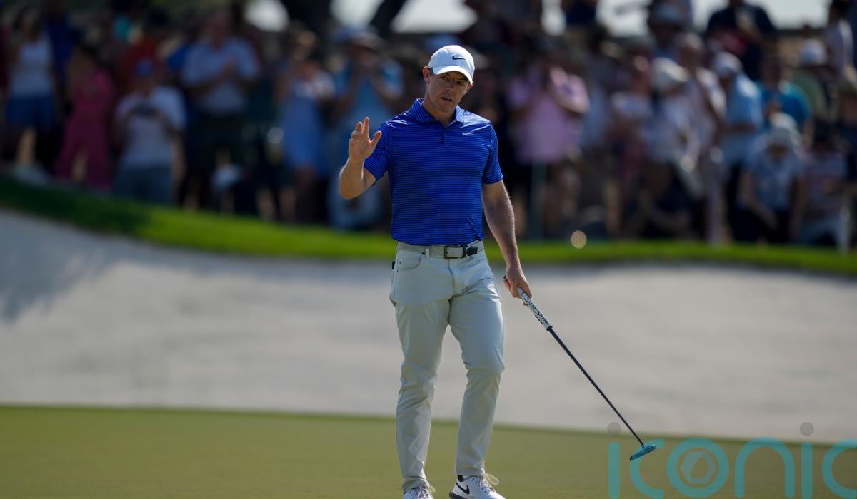 McIlroy had spoken about wanting to be stood on the final green on Sunday with both trophies, and he was in a two-way battle for the title with Rasmus Hojgaard at 13 under with five holes remaining.